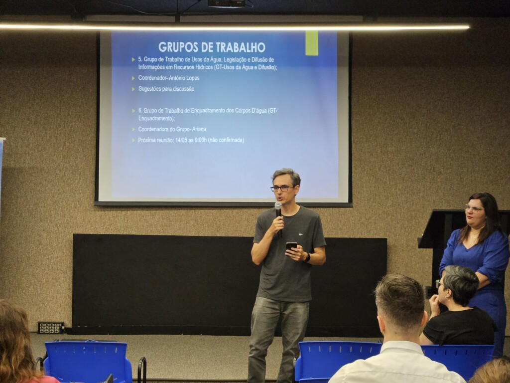 Durante a reunião, também foram apresentados informes dos Grupos de Trabalho. O coordenador do GT-Usos, Antônio Lopes, e a coordenadora do GT-Enquadramento, Ariana Damiano, destacaram os principais pontos debatidos nas últimas reuniões.